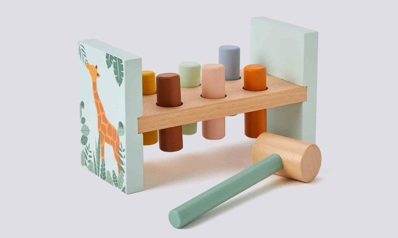The Hammer Bench is a fun, interactive toy that helps toddlers develop motor skills and hand-eye coordination.