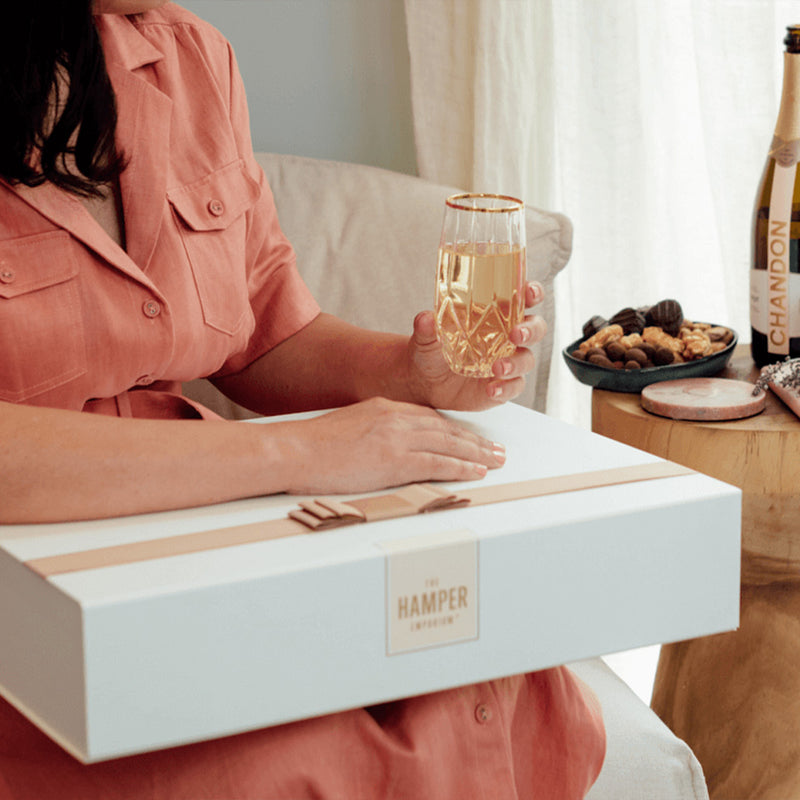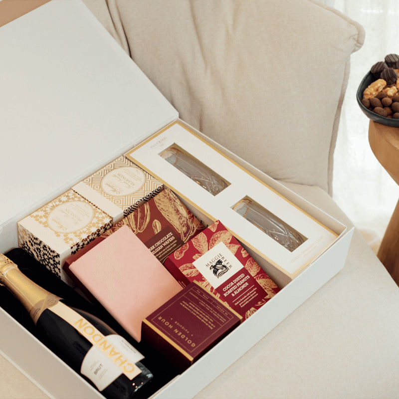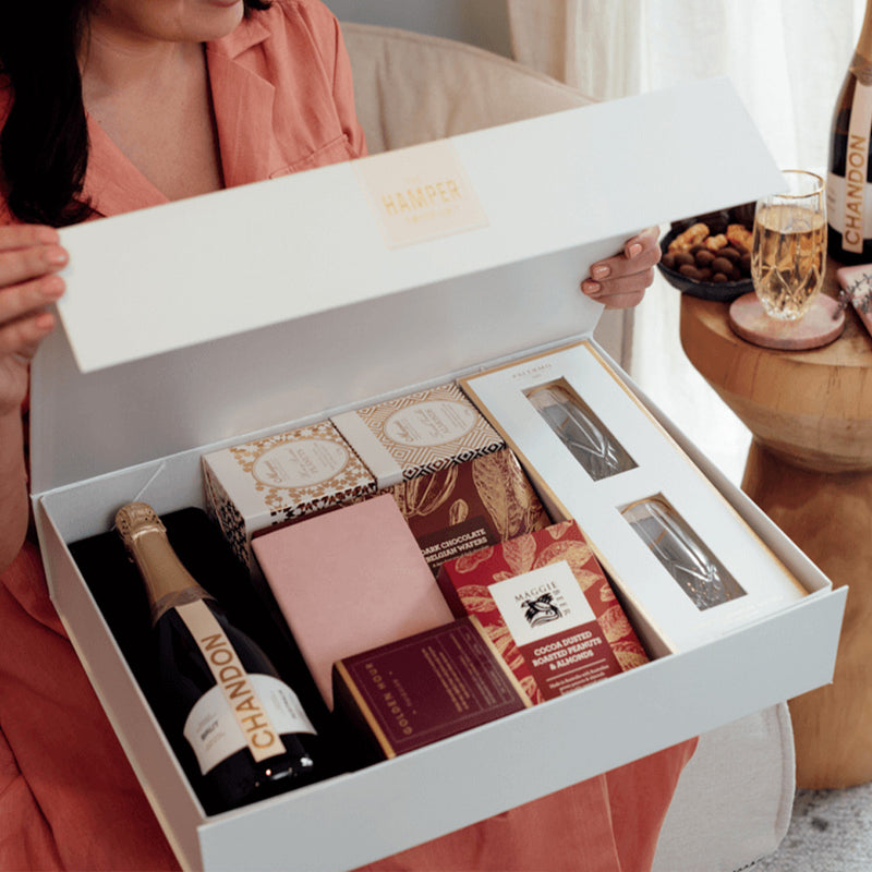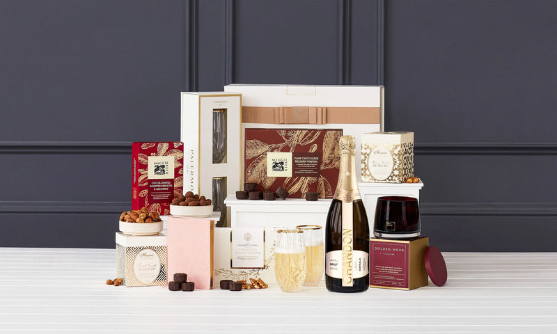 With sparkling wine, champagne flutes, gourmet treats, and more, this luxury hamper is simply stunning.