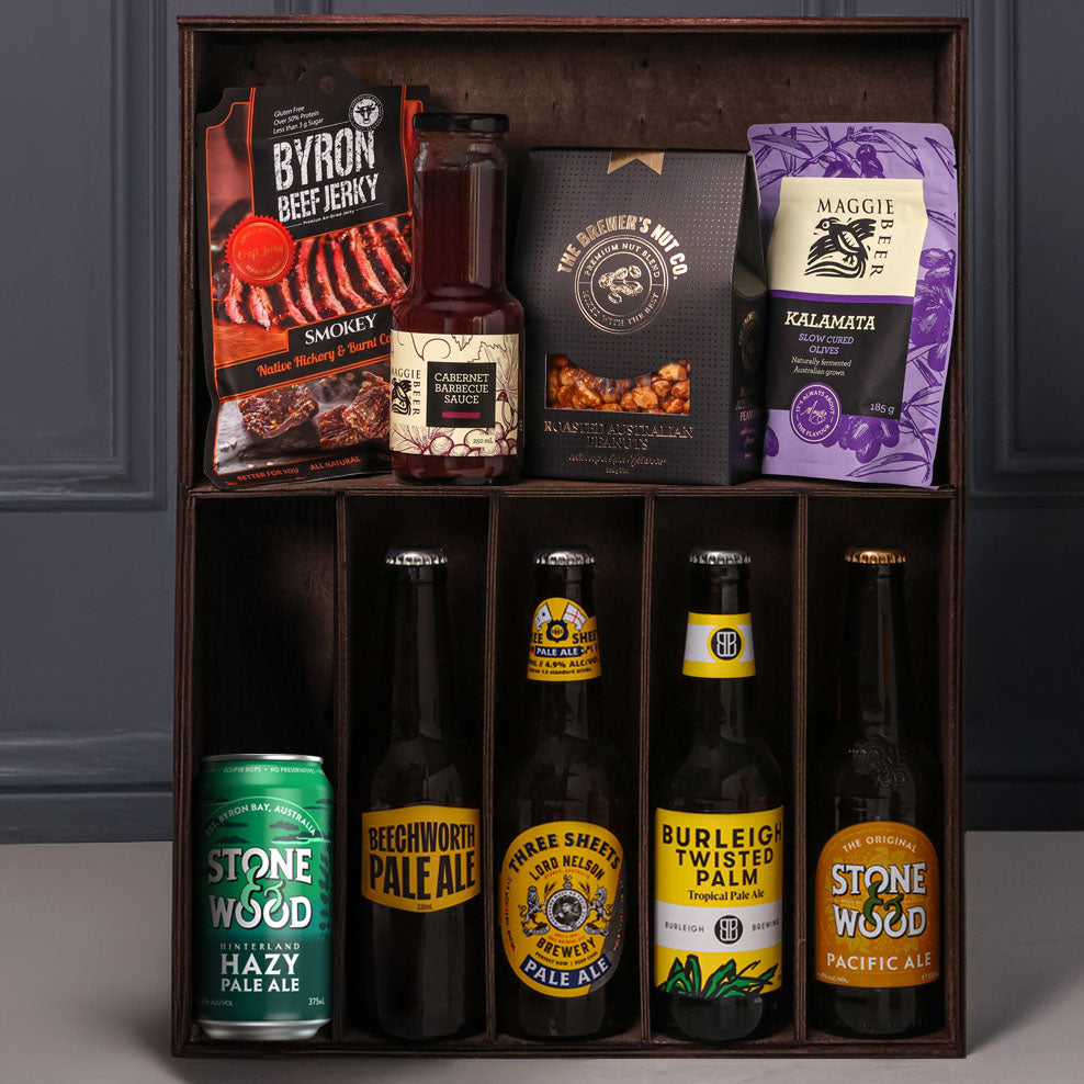 Share some of Australia's best beers from microbreweries and BBQ bites with this beer hamper.