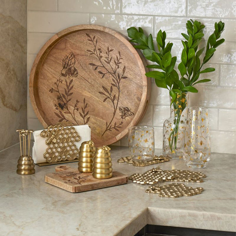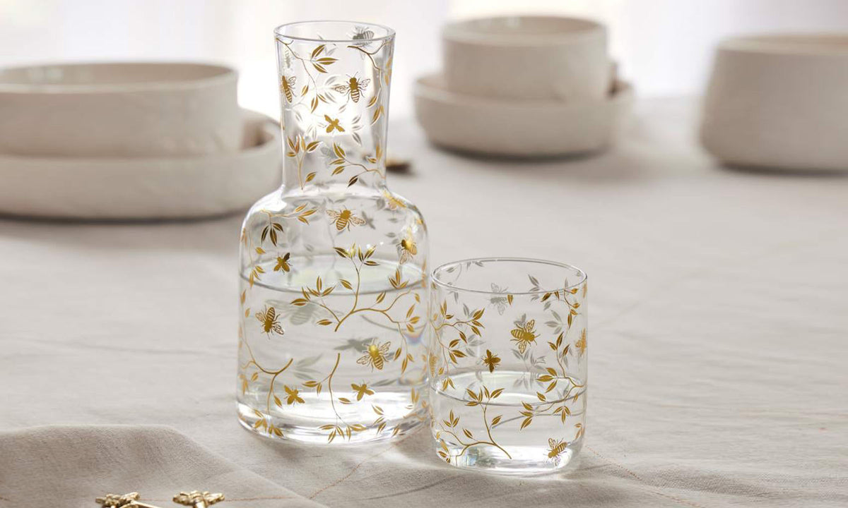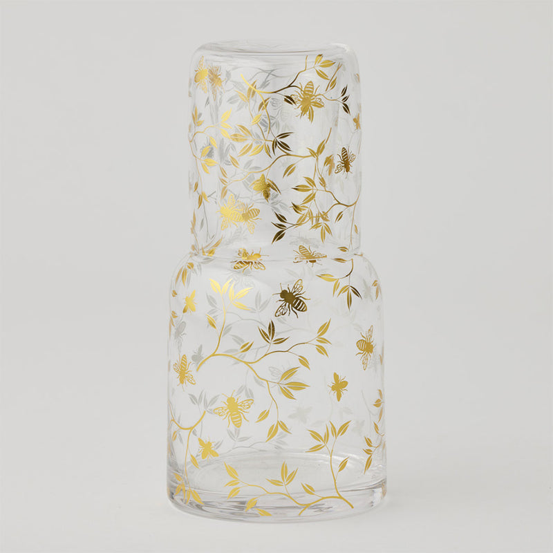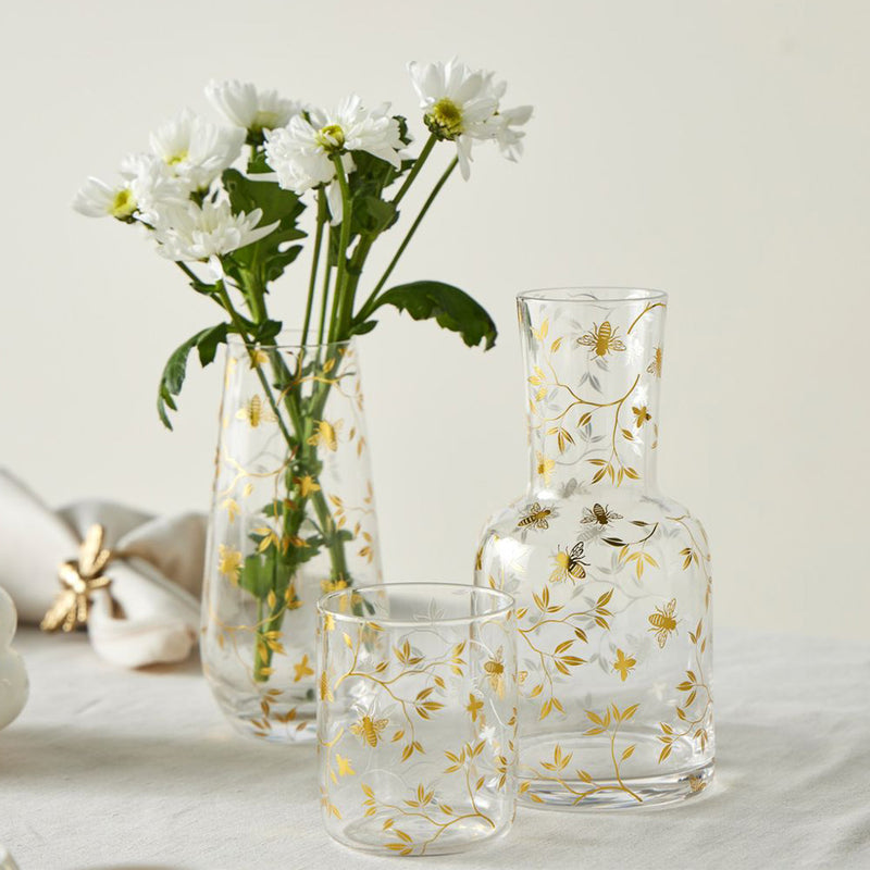 On this 770ml carafe and tumbler glass set, gold bees dance around flowers gorgeously.
