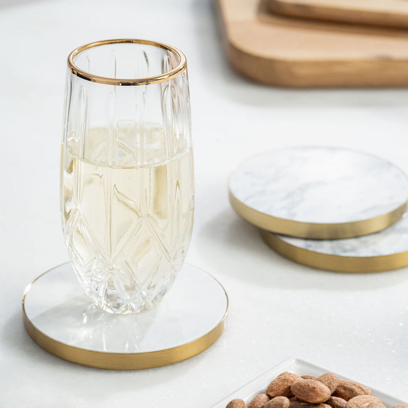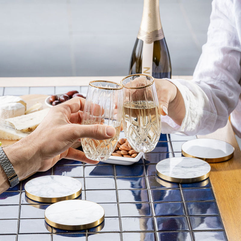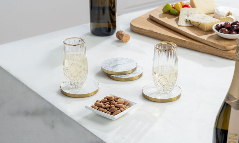 Send your team members home with champagne glasses and coasters and make their next toast a fancy one.