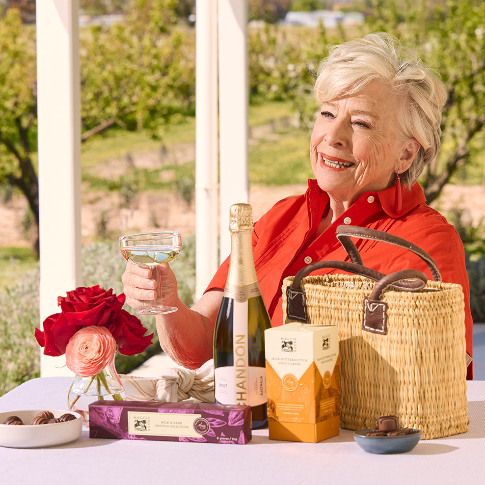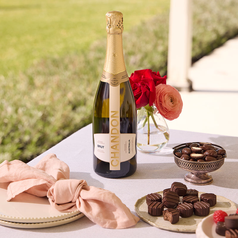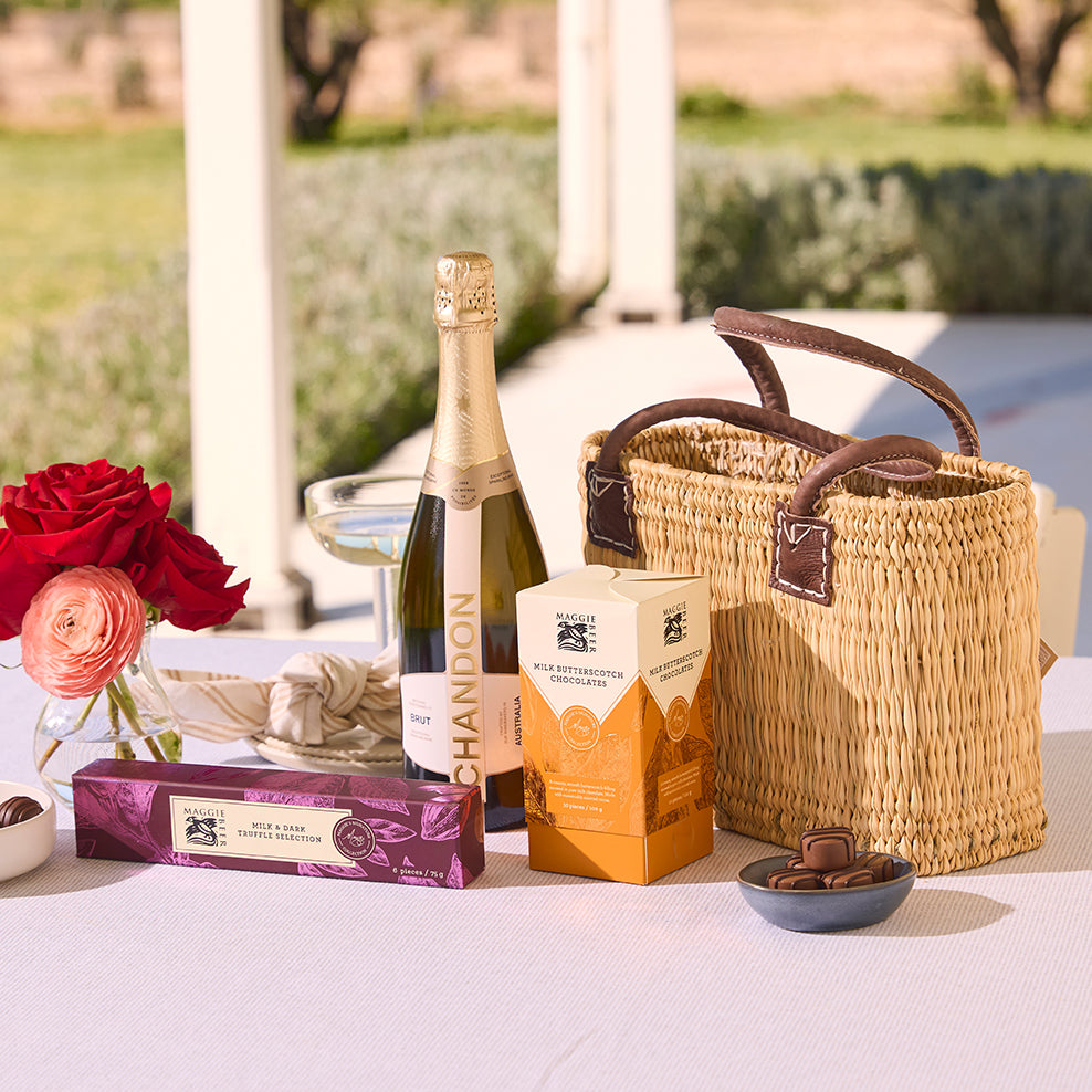 Delight them with a basket brimming with elegant Chandon and gourmet chocolates.