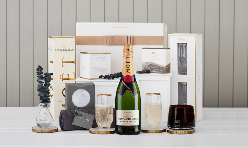 Spoil a homebody with gifts for their home, including a bottle of Moët & Chandon champagne for celebrating.