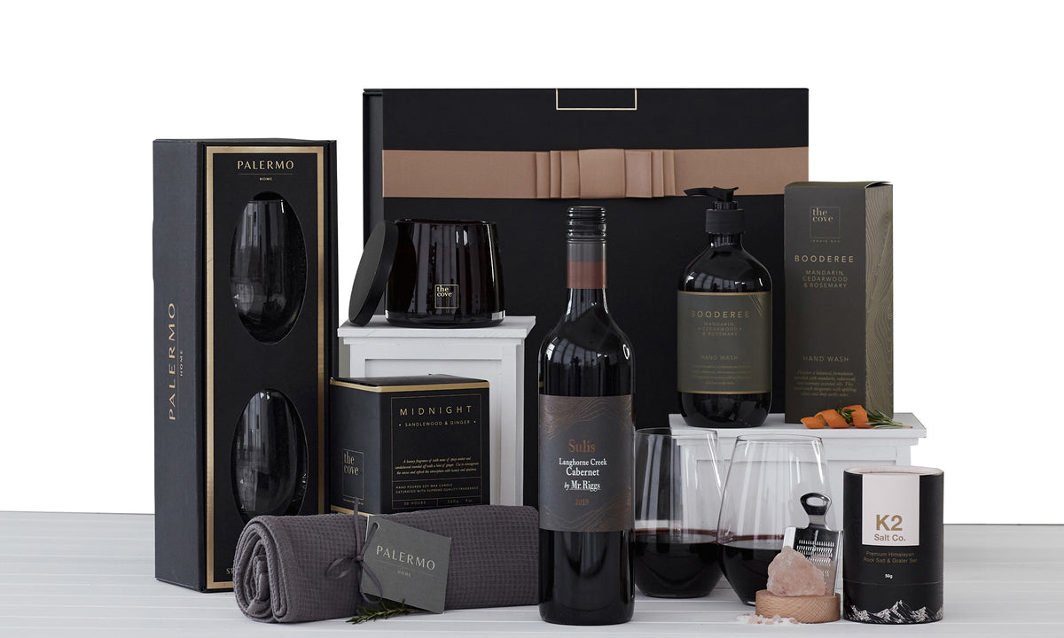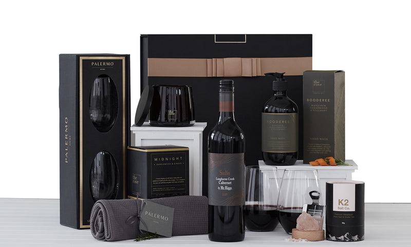 This homewares hamper is full of goods to make them feel at home, from Aussie red wine to gorgeous glassware.