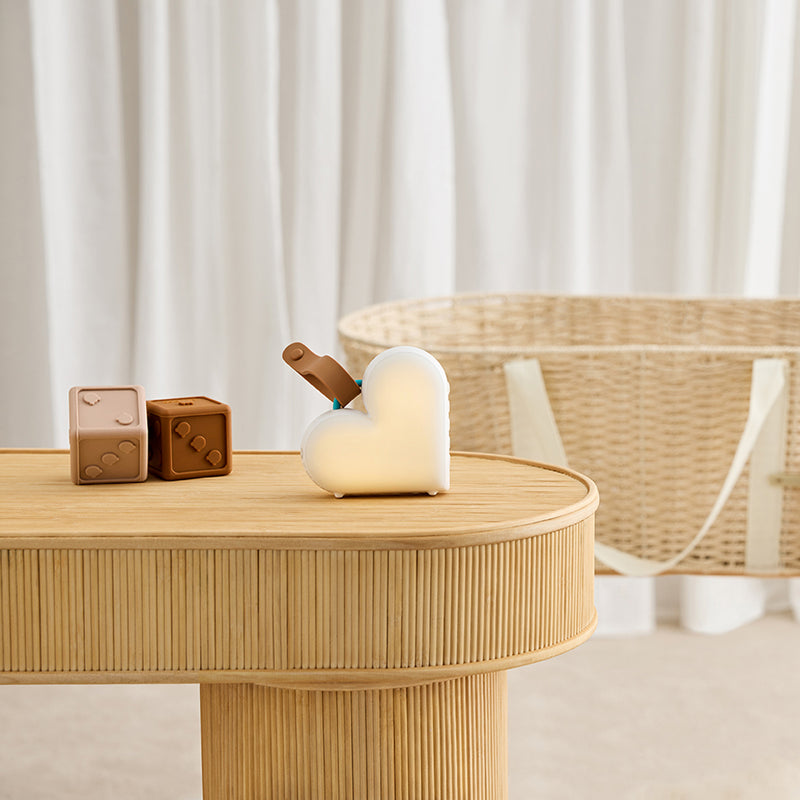 Help baby feel comfortable and sleep soundly with this heart-shaped portable sound machine and night light.