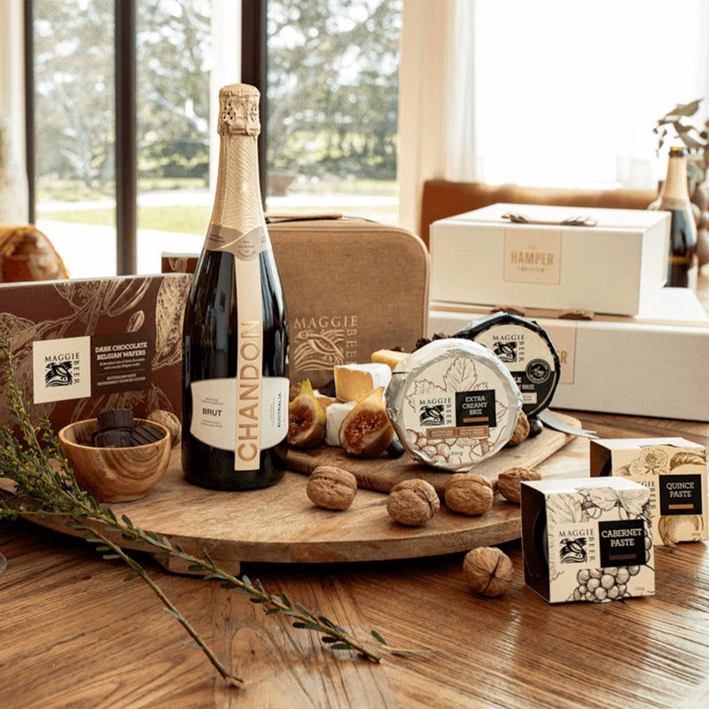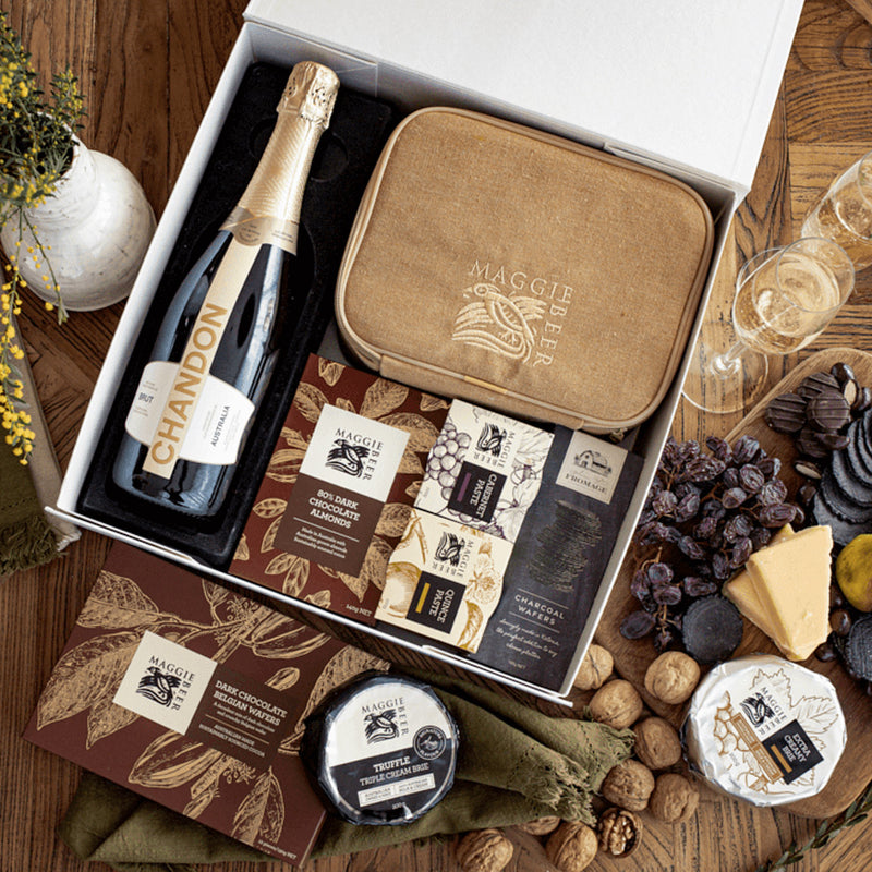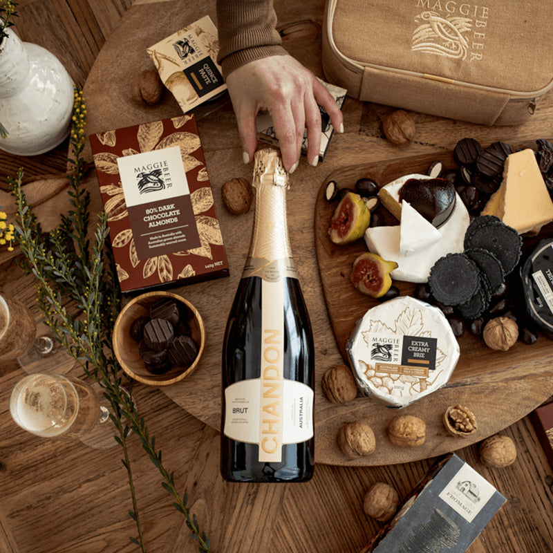 Enjoy three of our favourite things: Chandon and Maggie Beer's cheese and chocolate.