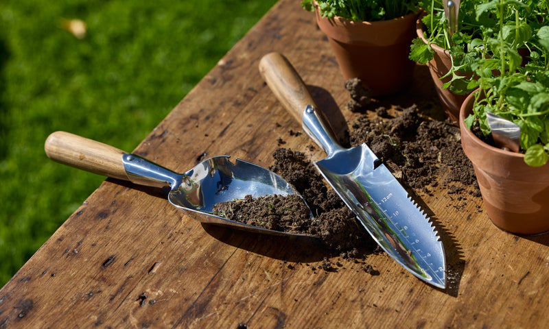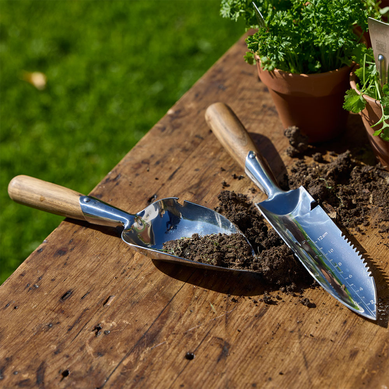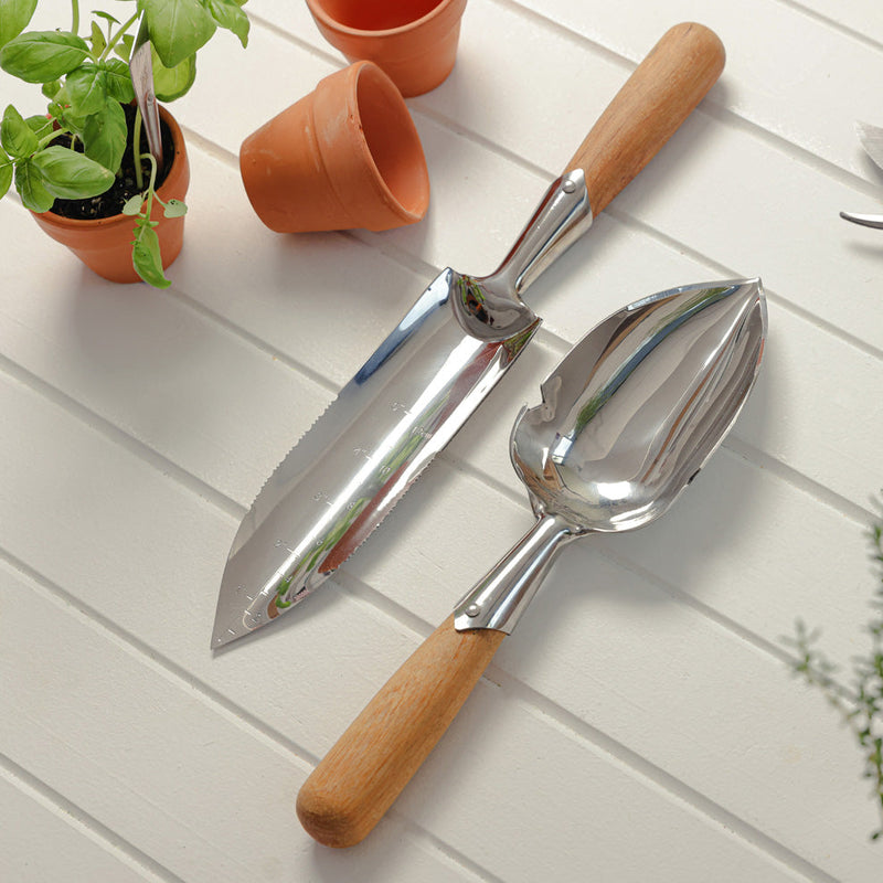 Gift Maggie Beer's love for gardening with her teak wood and 304 stainless steel spade and trowel set.