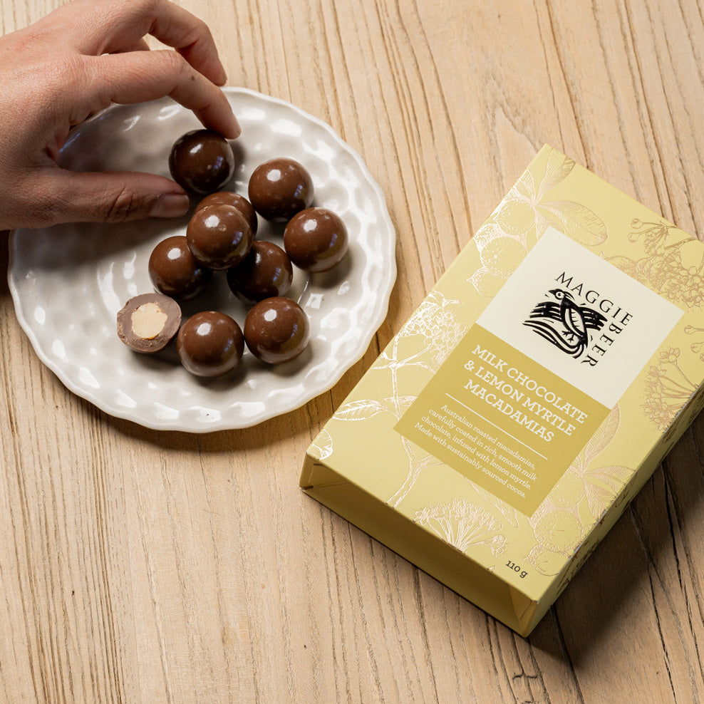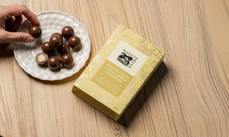 There's a flavour you may not expect in these chocolate macadamias, and it comes from our own bush.