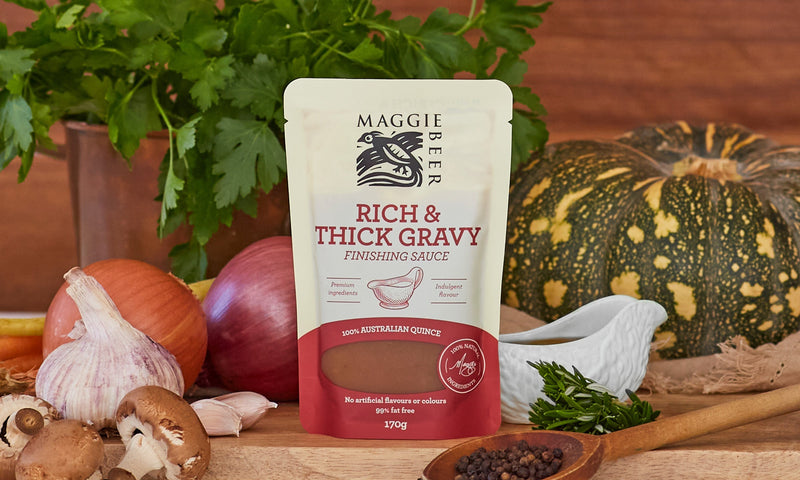 Oh hey! You've discovered our Maggie Beer - Rich Gravy Finishing Sauce 170g! This crowd-pleaser is so sought-after, we've carefully placed it within our fabulous hampers, ensuring every gift feels truly special. Curious to find it? Explore our curated hamper selection and uncover a world of other hand-picked products!