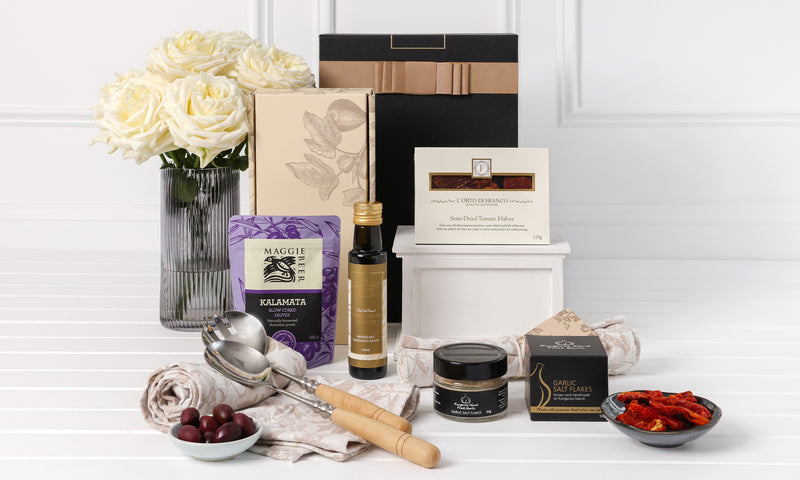 Surprise their inner foodie with a Maggie Beer hamper with epicurean nibbles and salad servers.