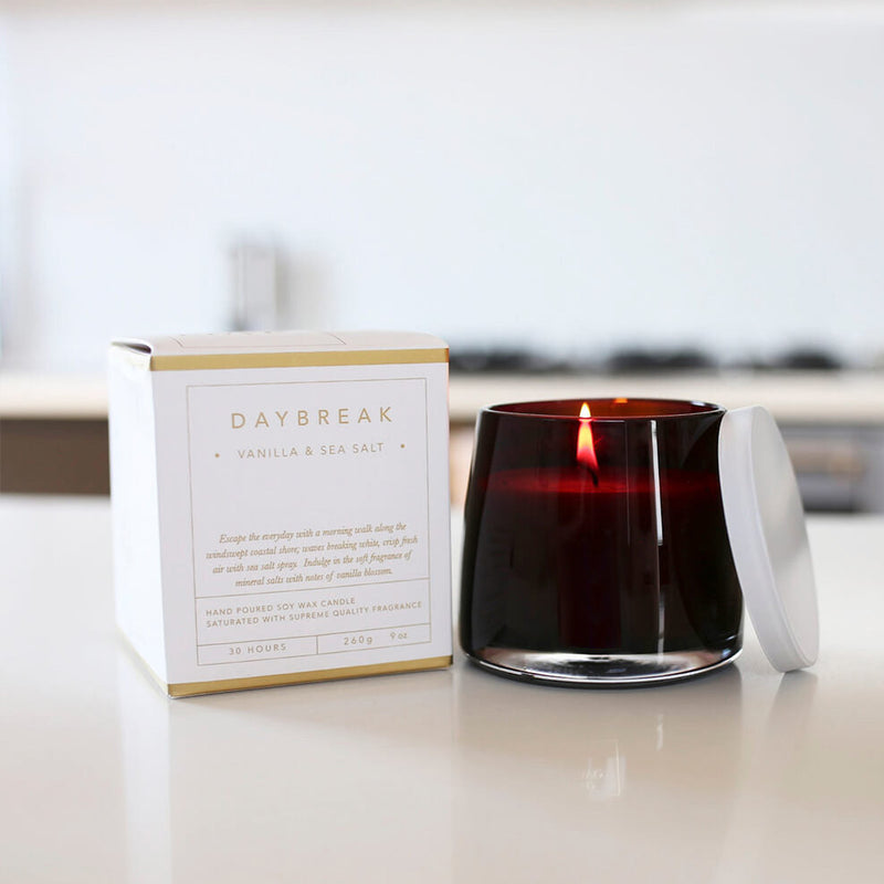 Indulge in the soft fragrance of mineral salts with notes of vanilla blossom with this beautiful soy candle.