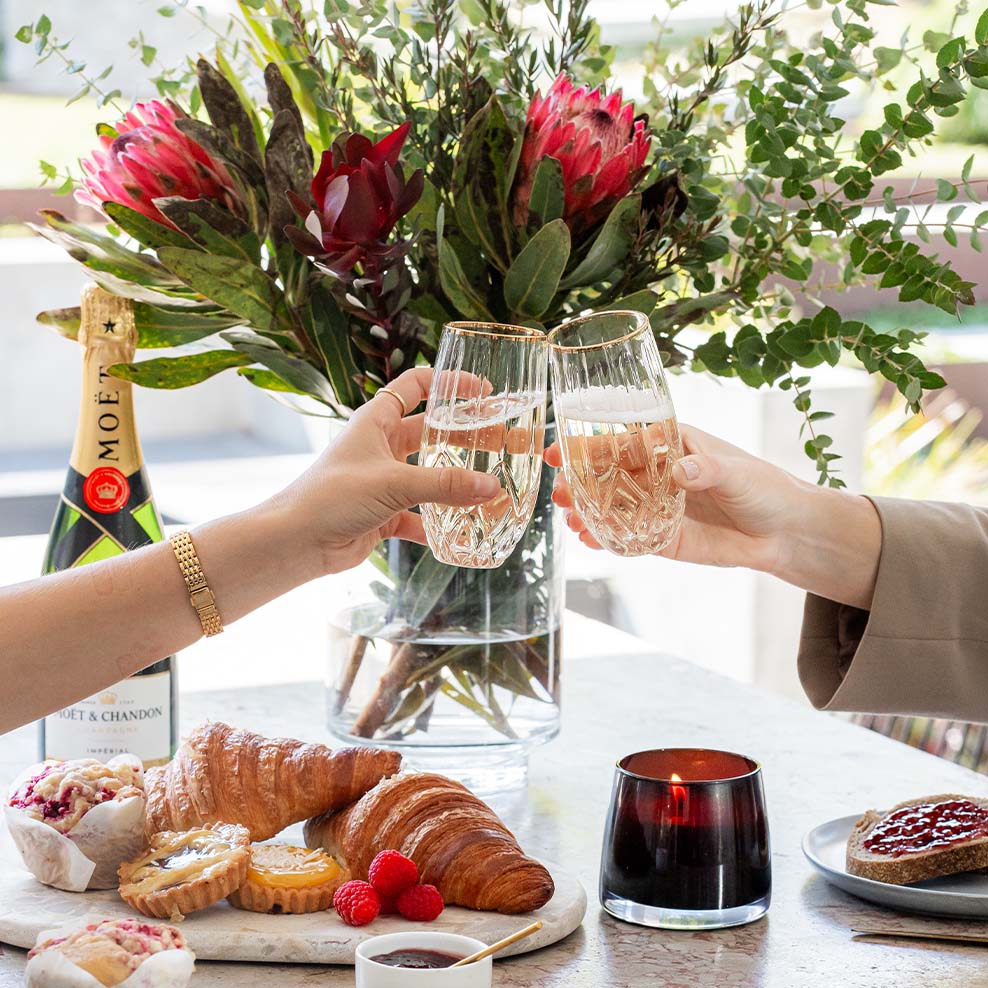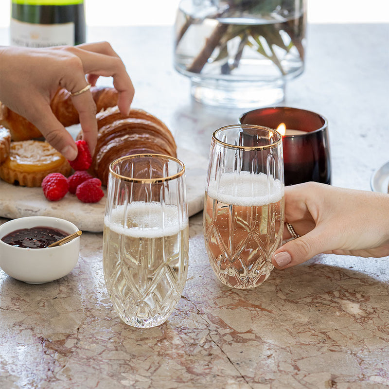 Raise a glass and make a toast with these gorgeous crystal stemless champagne glasses with 24-carat gold rims.