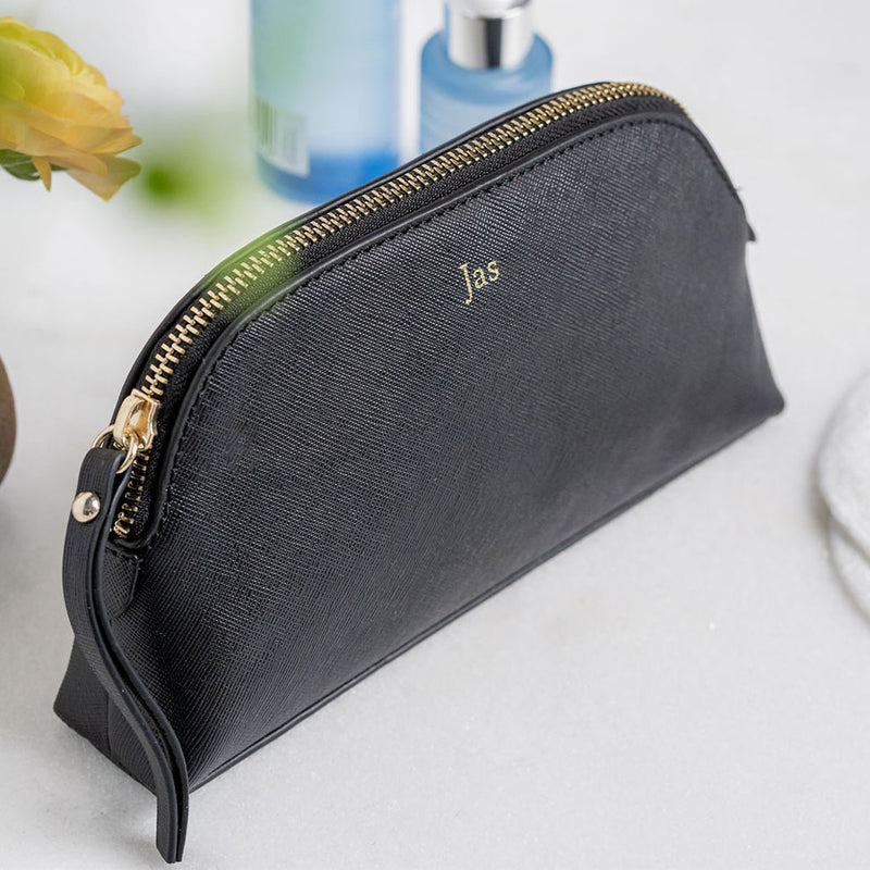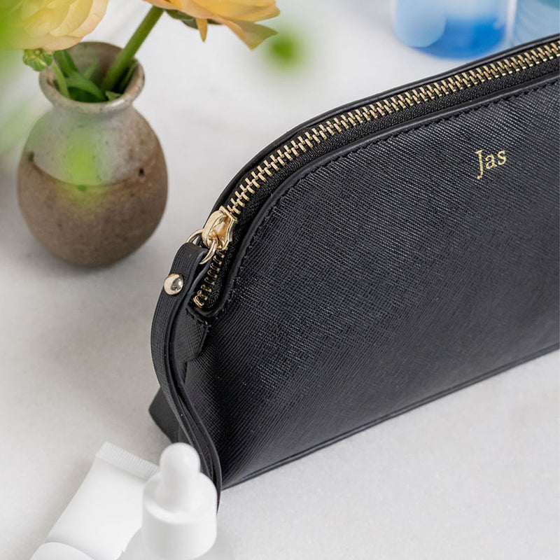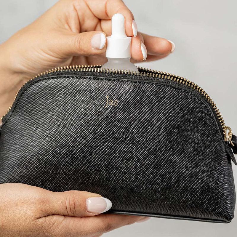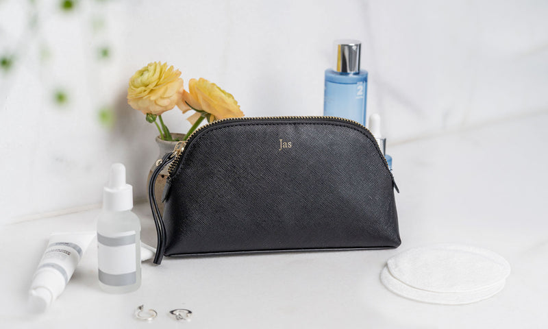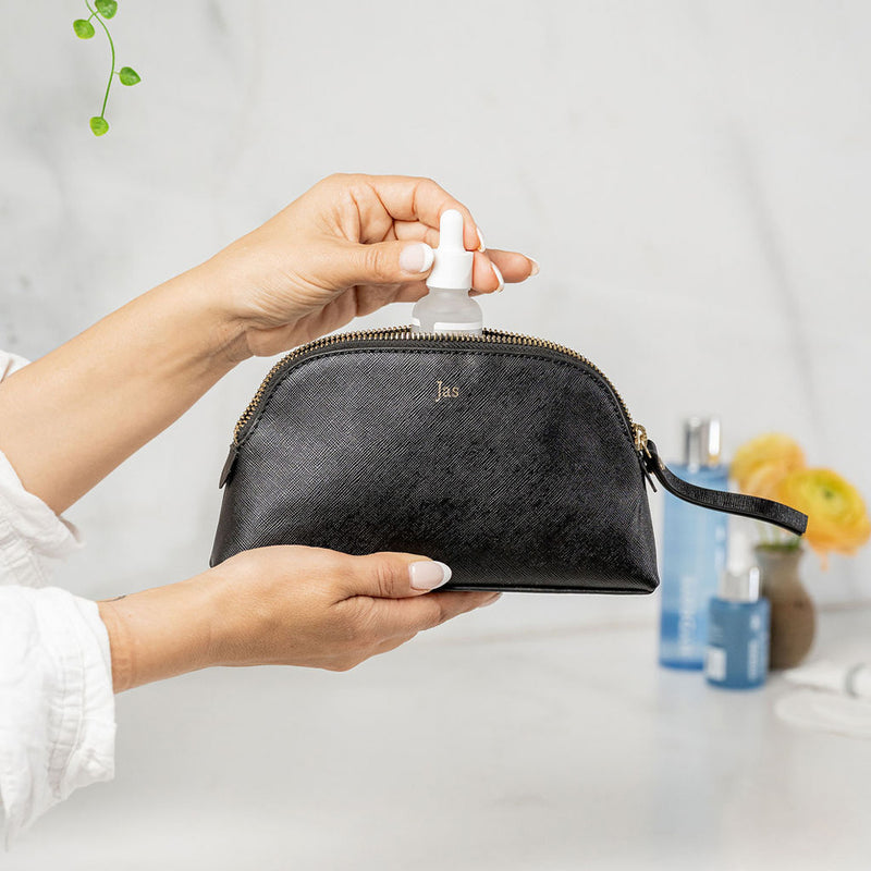 A beautiful leather cosmetics bag that keeps beauty essentials stylishly organized and ready!