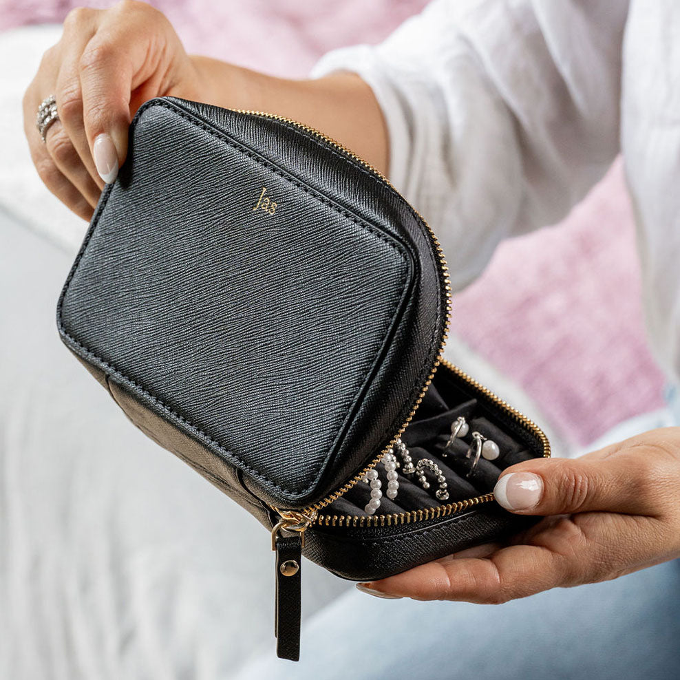 Tidy and travel-ready, this leather jewellery case, will keep all her tokens perfectly organized.