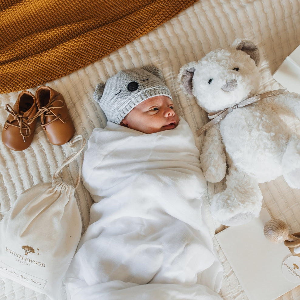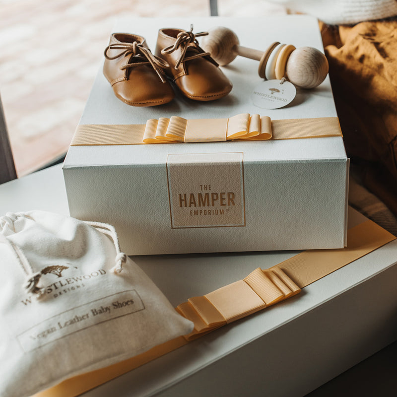 This baby hamper features a carefully curated range of stunning gifts for baby and their happy new parents.