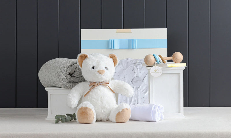 He'll be cuddled up in the ultimate cuteness with this adorable baby hamper with Sheridan goodies.