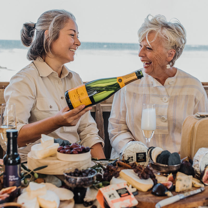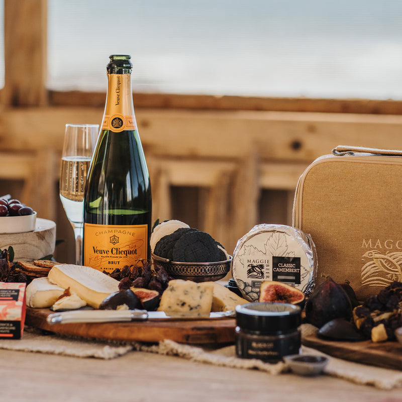 Veuve Clicquot fans will feel as happy as can be when toasting with this gourmet cheese hamper.