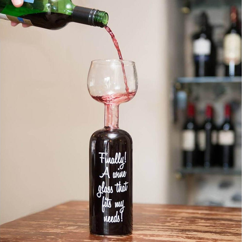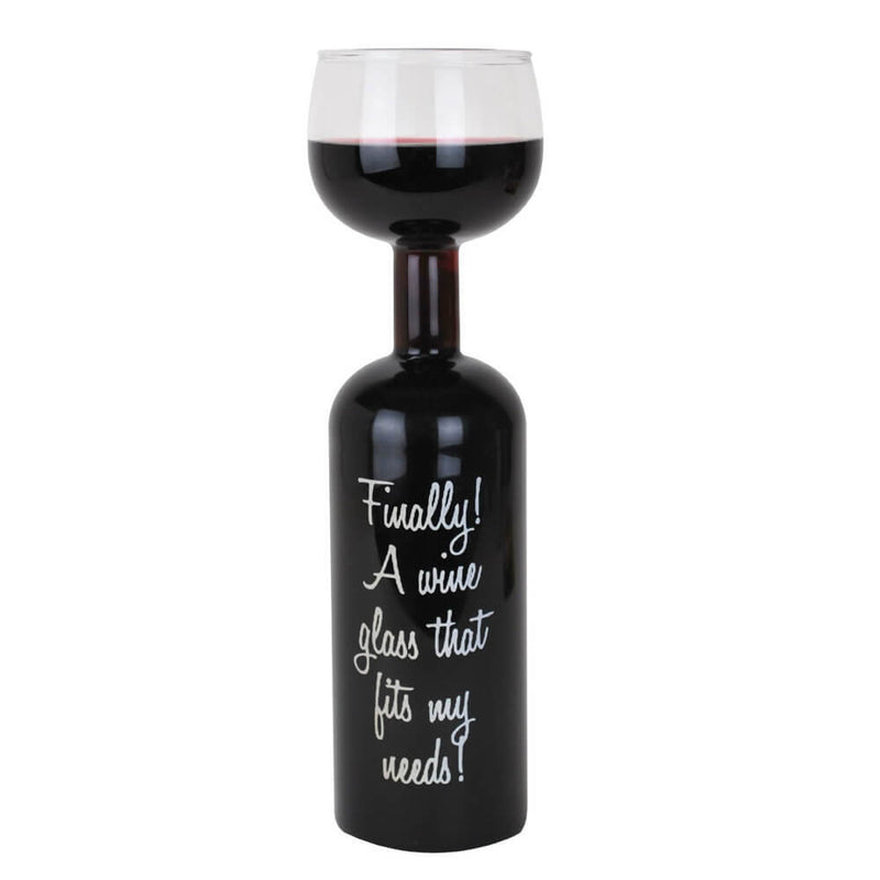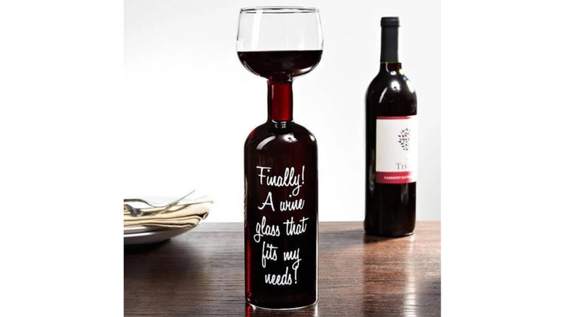 Get them a wine bottle with a built-in wine glass and the phrase "Finally! A wine glass that fits my needs!".