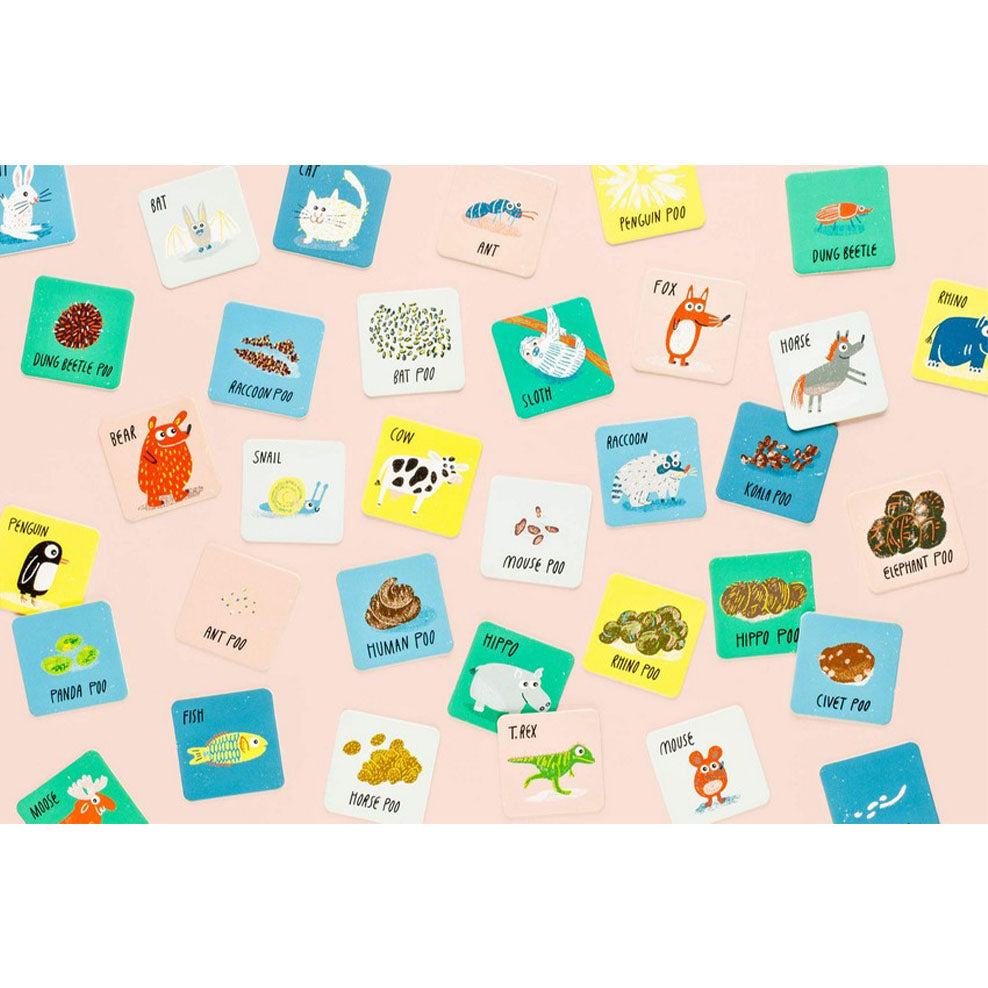 Entertain and educate young readers about 27 animals and their poo with a matching game that tests memories.