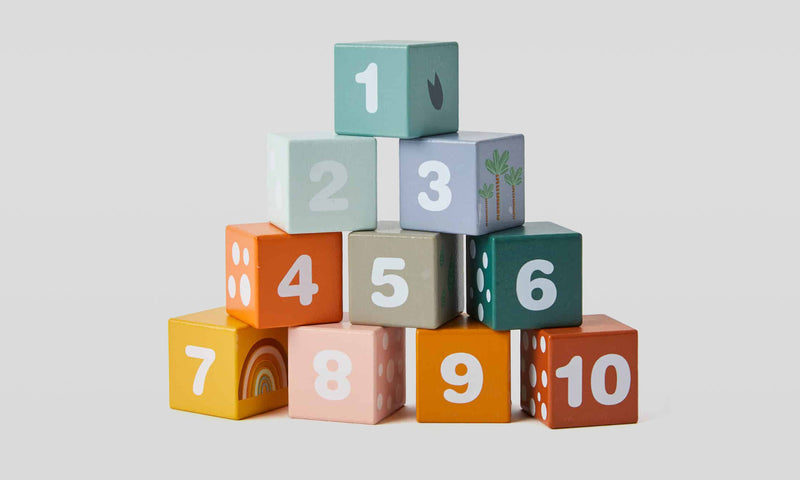This beautiful chunky wooden block set is a wonderful way to teach little ones to count, stack, match & build.